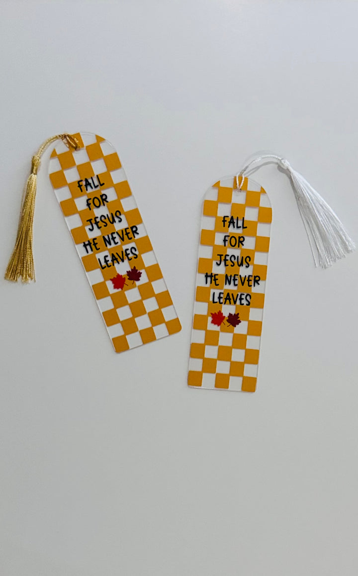 Diseñado para quienes desean añadir un toque de inspiración a sus lecturas bíblicas o devocionales. Con un estilo otoñal y un mensaje eterno, este marcador es un recordatorio de que Jesús nunca se va.